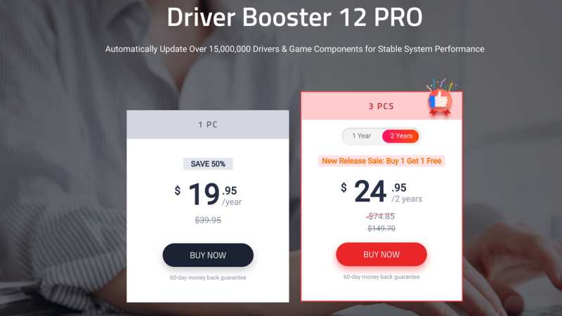 The premium version of IObit Driver Booster is available through an annual subscription, with two different plans according to the number of supported PCs. You can get a yearly subscription covering 1 PC for $19.95 and 3 PCs for $24.95. Note that these are discounted rates for first-time users. In the ensuing years, you may end up paying the regular price, which is $39.95/year for 1 PC and $74.85/year for 3 PCs.