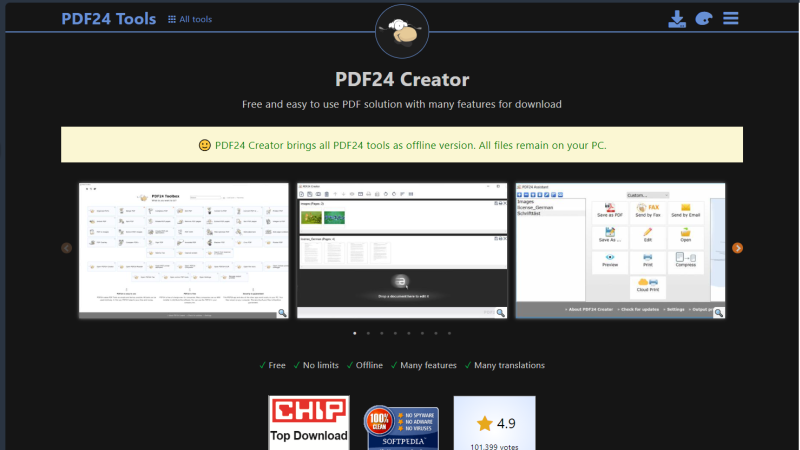 PDF24 is completely free. The company doesn’t offer any premium options at all, and there is just one single download option for the main application, no different versions. It also doesn’t install any additional software on your computer, as is common with other free applications on the market right now. The program can be used for all purposes without having to explicitly get a license from the developers, which is great for those who want to try it out in a commercial production environment.