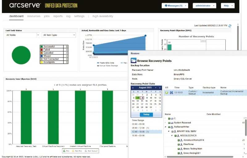 Protection plans are very flexible and contain selected nodes, an RPS, the required number of recovery points and a schedule that can be run as often as every 15 minutes. A smart feature is the option to add extra tasks to a plan; these include replication to a remote RPS and assured recovery, which loads a temporary VM on a virtualization host, confirms it works and then deletes it.